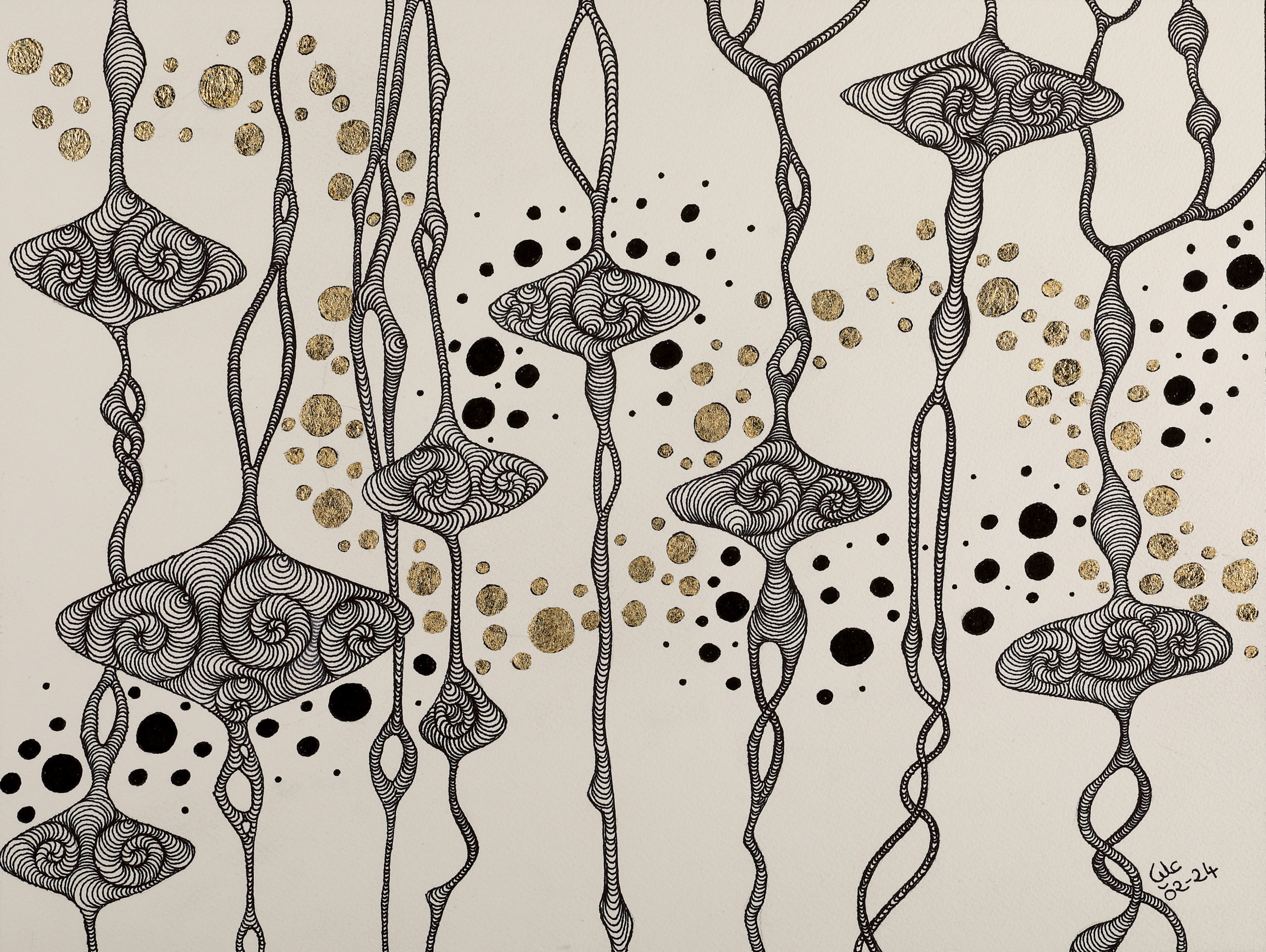 As she struggles herself from chronic and invisible illness, her art plays a big role in her healing process. When she starts drawing or painting she enters into a trance that takes her deep into a world or cocoon that she creates for herself that gives her soothing waves and develops enchanting worlds. Each piece she creates would talk about how she feels at the moment. Whether it’s sadness, happiness, or pain, her work has been definitely her best coping tool.