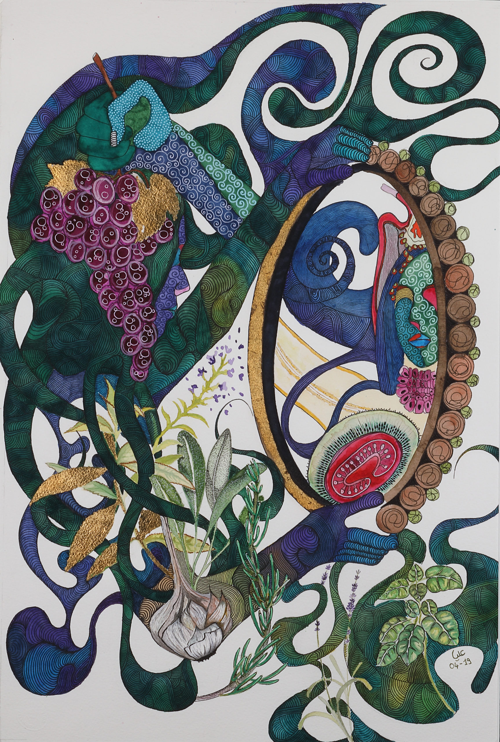“All my drawings are full of symbols and meaning that explain my sentiments about milestones in my life, my past experiences and my everyday life. I also try to express my views about current sociopolitical issues, health issues, religions and human rights. But I also try to draw in a way that allows the viewers to interpret the pieces in their own way. The goal of my drawings is to intrigue, engage and provoke thought and reflection from the viewers. The intricate level of detail in each piece allows the viewer to discover more details and make new interpretations each time they view the piece.”