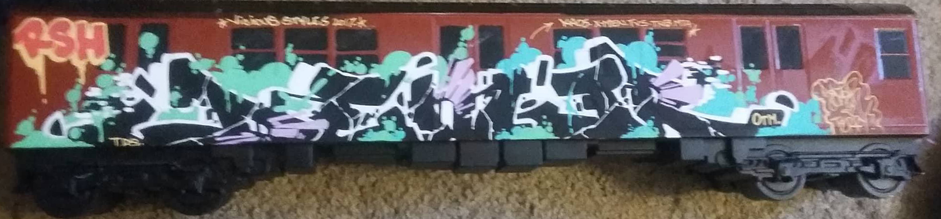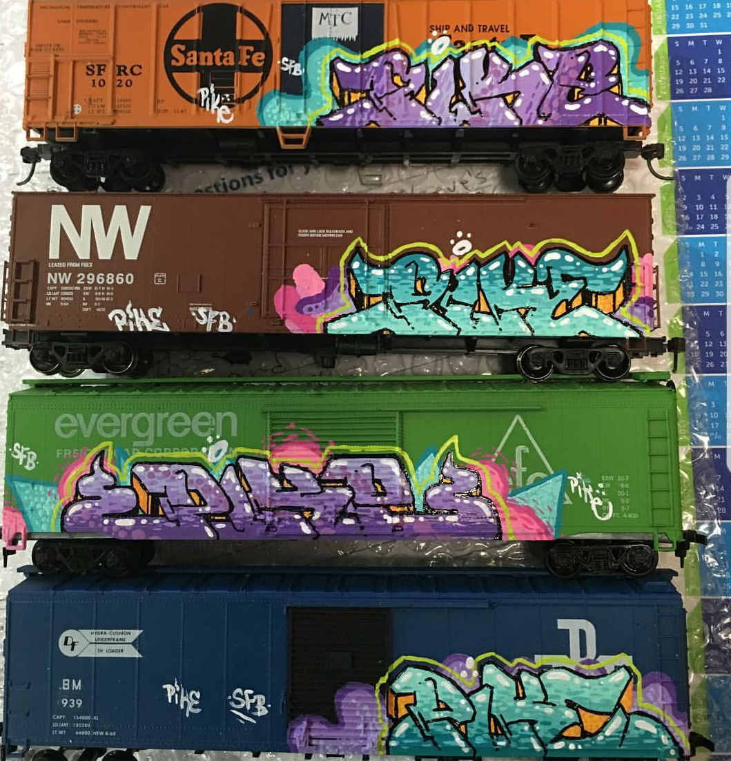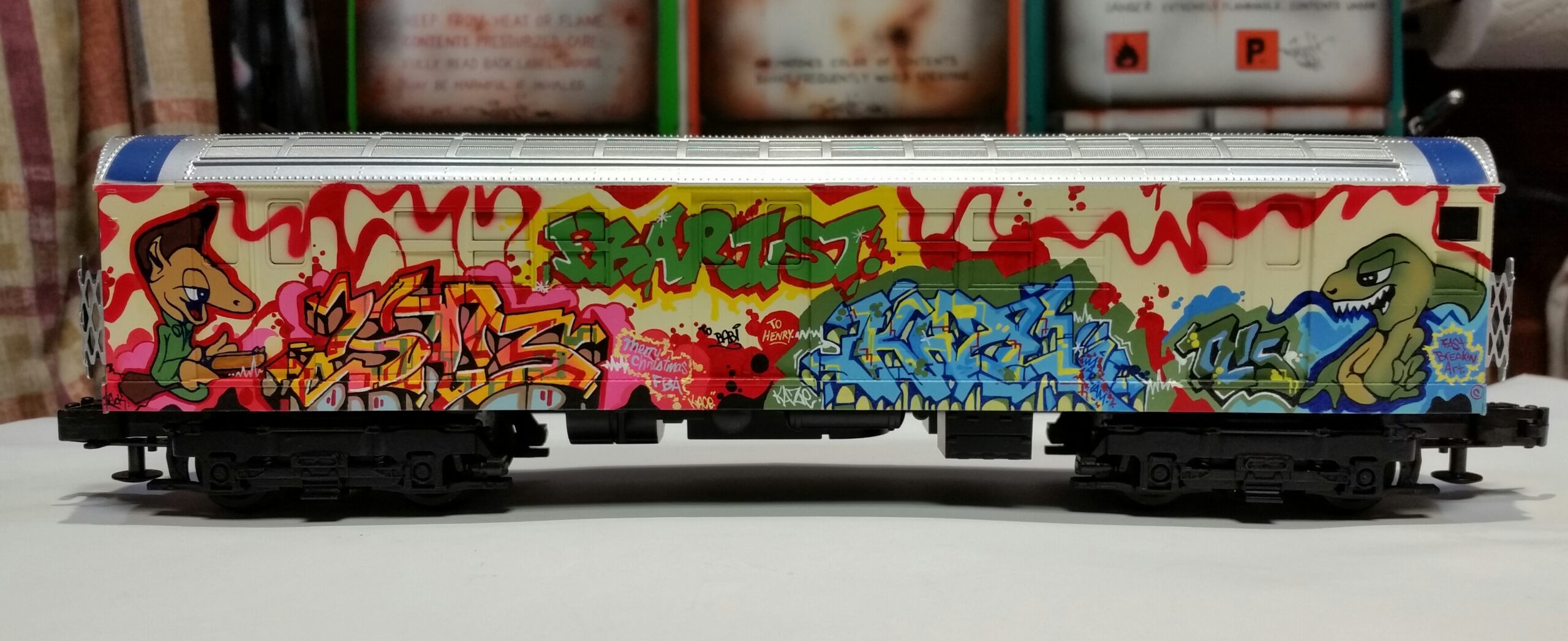 Installations: Model Railroad Set, Mock Train with Logos and Graffiti