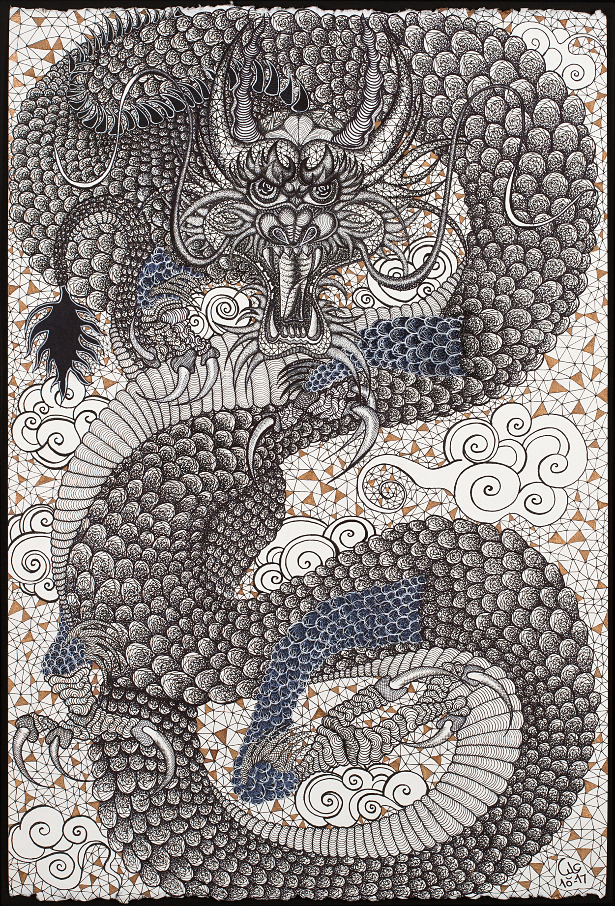 My artwork reflects my daily life and emotions. I like to use a combination of intricate lines, shapes and repetitive patterns that I usually enhance with colors, ink, gold and silver paint and watercolors to create the desired textures and intensity mostly on Arches paper.