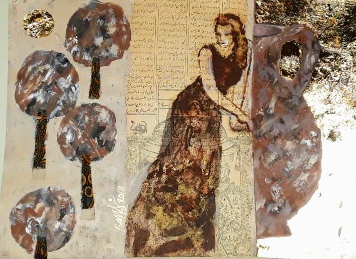 “Here, I have focused on three elements: woman, poetry, and nature. I have also emphasized collage, as my technique.
